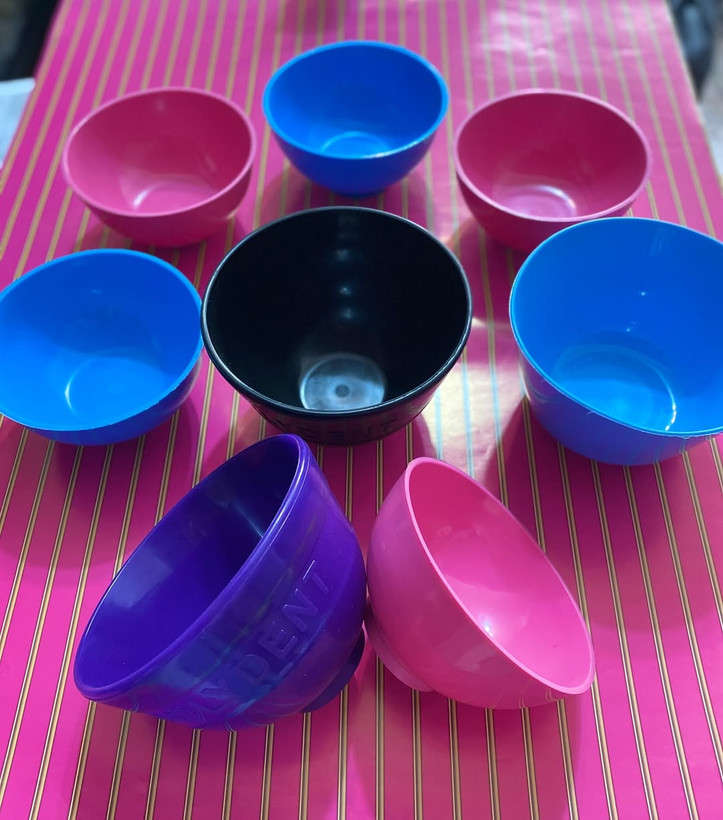 سلام عزیزای لبخند کاسه های پلاستیکی در سایز های کوچک و بزرگ برای راحتی کار شما در (به هم زدن گچ) در رنگ های خوشگل قیمت کاسه بزرگ:۹۵ قیمت کاسه کوچک:۷۵